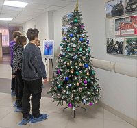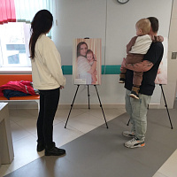 В холле детской поликлиники участники Акции с большим интересом познакомились с представленными на фотовыставке «Рожденные вопреки» портретами мам и их детей, родившимися преждевременно, и патриотическим стендом, посвященным СВО и ее героям.