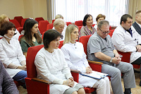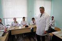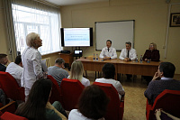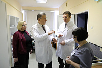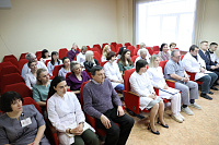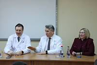 По завершении рабочего совещания Иван Петрович Мошуров в актовом зале встретился с коллективом клиники, где рассказал о важности сохранения поступательного развития больницы, как основной собственной лечебно-образовательной базы, отметив необходимость повышения эффективности лечебного и образовательного процессов, а также ответил на различные вопросы сотрудников ВДКБ.