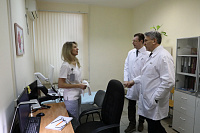 По окончании встречи с коллективом и. о. ректора ВГМУ в сопровождении главного врача прошёл по всем корпусам ВДКБ и ознакомился с работой ключевых подразделений больницы: Эндокринологического центра, клинико-диагностической лаборатории, кабинета функциональной диагностики, кабинетов ультразвуковой и эндоскопической диагностики, МРТ и рентген кабинетов, ПИТ. Также посетил кухню и палаты для пациентов. Не остались без внимания и кабинеты, в которых размещаются кафедры и проводятся занятия со студентами.
