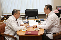 В ходе совещания, Иван Петрович Мошуров высказал ряд ценных предложений по комплексному развитию новых направлений деятельности университетской клиники, отметив при этом важность сбалансированного сочетания лечебной, образовательной и научной работы. Обсудил с руководством больницы перспективы развития учреждения в плане повышения доли оказания высокотехнологичной медицинской помощи, а также улучшение условий работы персонала и внедрение современных технологий. Иван Петрович подчеркнул, что клиника уже сейчас является не только современным лечебным учреждением, но и надёжной базой для качественного практического обучения студентов педиатрического факультета ВГМУ.